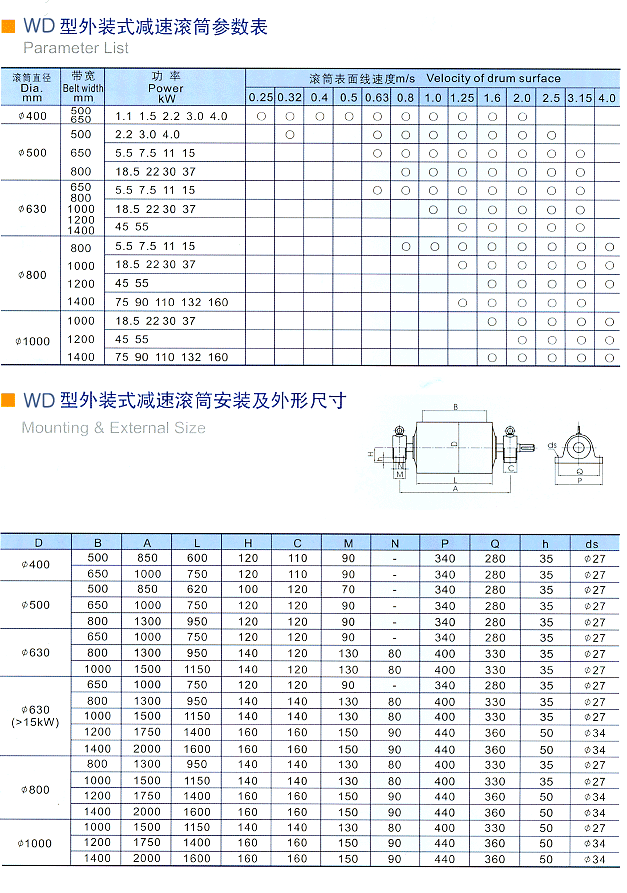 傳動機械 >> WD(II)系列外裝式減速滾筒
