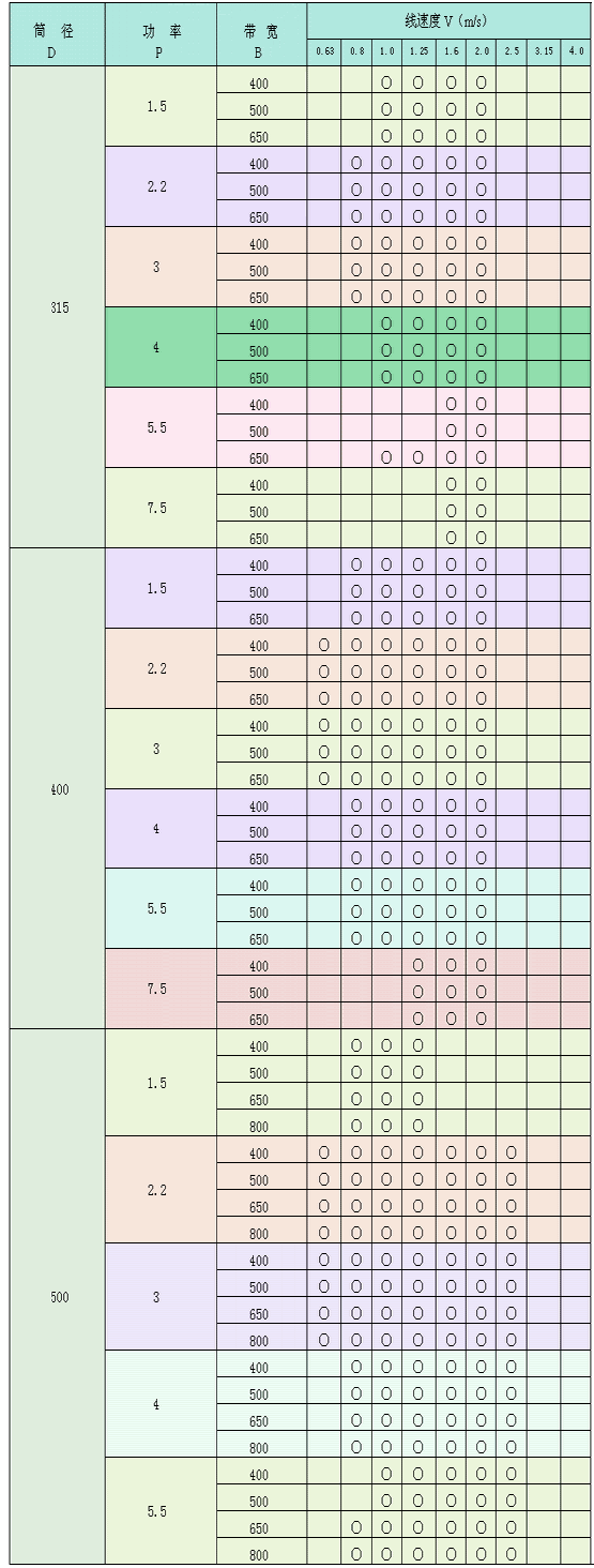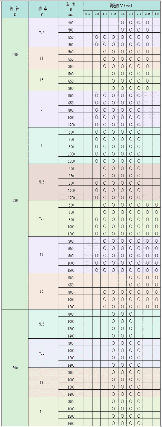 WD 型外裝式電動滾筒系列參數表: