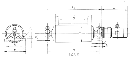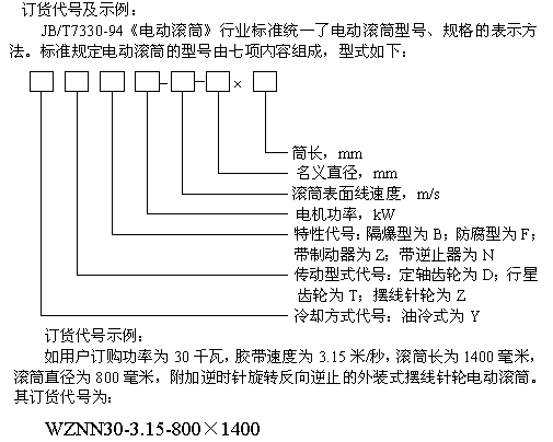(2).用戶訂購逆止電動滾筒時,須注明旋轉方向,如不注明則為任意方向。其表示方法為在特性代號后加“S”(表示在電機引出線一側觀察,端蓋應順時針旋轉)或“N”(表示在電機引出線一側觀察,端蓋應逆時針旋轉);